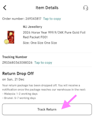 You’ll be able to track your return, refund, and exchange statuses all on ZALORA! Go to Account > My Orders and filter the order status to “Returns/Exchanges”. Then click “Track Return”. You can also track your returns by downloading the SF Express app and creating an account or signing-in with the same mobile phone number you used as your contact number for the delivery of your ZALORA order.