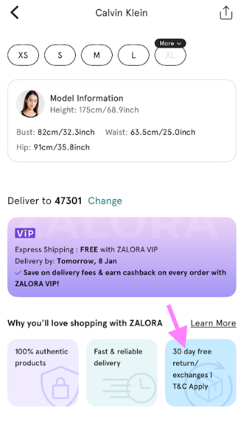 Allow 1-2 working days for your return to be processed at the ZALORA Warehouse.
